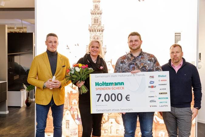 In der Holtzmann-Badausstellung wurden die Gewinner im Beisein der Lieferanten und Partnern der diesjährigen Charity-Aktion "Holtzmann & Friends" durch Sören und Louis Holtzmann geehrt und ihnen ihre symbolischen Spendenschecks überreicht.